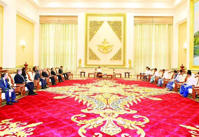 ပြည်ထောင်စုသမ္မတမြန်မာနိုင်ငံတော် ယာယီသမ္မတ နိုင်ငံတော်လုံခြုံရေးနှင့် အေးချမ်းသာယာရေးကော်မရှင်ဥက္ကဋ္ဌ ဗိုလ်ချုပ်မှူးကြီး မင်းအောင်လှိုင်ထံ ရုရှားဖက်ဒရေးရှင်းနိုင်ငံ၊ “Roscosmos” နိုင်ငံပိုင်ကော်ပိုရေးရှင်း၏ အထွေထွေညွှန်ကြားရေးမှူးချုပ် Mr. Dmitry V. Bakanov ဦးဆောင်သည့် ကိုယ်စားလှယ်အဖွဲ့က ယနေ့နံနက်ပိုင်းတွင် နေပြည်တော်ရှိ ဇေယျာသီရိဗိမာန်ဧည့်ခန်းမဆောင်၌ လာရောက်ဂါရဝပြုတွေ့ဆုံသည်။