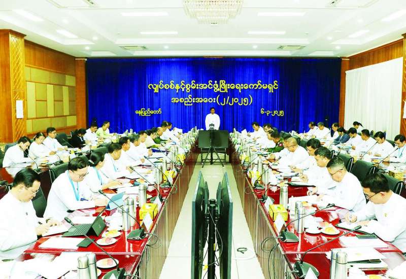 လျှပ်စစ်နှင့်စွမ်းအင်ဖွံ့ဖြိုးရေးကော်မရှင်၏ (၂/၂၀၂၅)အစည်းအဝေးကို ယနေ့မွန်းလွဲပိုင်းတွင် နေပြည်တော်ရှိ နိုင်ငံတော်စီမံအုပ်ချုပ်ရေးကောင်စီရုံးအစည်းအဝေးခန်းမ၌ ကျင်းပရာ လျှပ်စစ်နှင့်စွမ်းအင်ဖွံ့ဖြိုးရေးကော်မရှင်ဥက္ကဋ္ဌ နိုင်ငံတော်စီမံအုပ်ချုပ်ရေးကောင်စီအဖွဲ့ဝင် ဒုတိယဝန်ကြီးချုပ်နှင့် နိုင်ငံတော်ဝန်ကြီးချုပ်ရုံး ပြည်ထောင်စုဝန်ကြီး ဗိုလ်ချုပ်ကြီးတင်အောင်စန်း၊ ကော်မရှင်ဒုတိယဥက္ကဋ္ဌ(၁)နှင့် ကော်မရှင်အဖွဲ့ဝင်များ၊ နေပြည်တော်ကောင်စီအဖွဲ့ဝင်၊ သီးခြားဖိတ်ကြားထားသည့်ပုဂ္ဂိုလ်များနှင့် တာဝန်ရှိသူများတက်ရောက်ကြပြီး တိုင်းဒေသကြီး၊ ပြည်နယ်ဝန်ကြီးချုပ်များက အွန်လိုင်းစနစ်ဖြင့် တက်ရောက်ကြသည်။