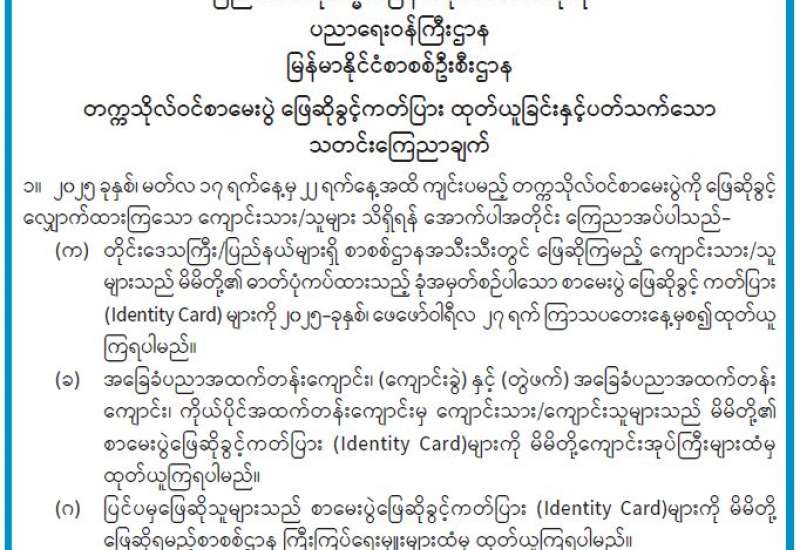 တက္ကသိုလ်ဝင်စာမေးပွဲ ဖြေဆိုခွင့်ကတ်ပြား ထုတ်ယူခြင်းနှင့်ပတ်သက်သော သတင်းကြေညာချက်