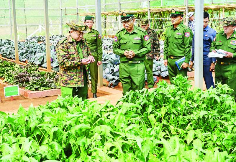နိုင်ငံတော်စီမံအုပ်ချုပ်ရေးကောင်စီဥက္ကဋ္ဌ တပ်မတော်ကာကွယ်ရေးဦးစီးချုပ် ဗိုလ်ချုပ်မှူးကြီးမင်းအောင်လှိုင်သည် ယနေ့နံနက်ပိုင်းတွင် ခရီးစဉ်တွင်လိုက်ပါလာသည့် အဖွဲ့ဝင်များ၊ အရှေ့ပိုင်းတိုင်းစစ်ဌာနချုပ်တိုင်းမှူးနှင့် တာဝန်ရှိသူများလိုက်ပါ၍ ဗထူးတပ်နယ်အတွင်းရှိ နယ်မြေခံစိုက်ပျိုးမွေးမြူရေးတပ်ရင်း၌ စိုက်ပျိုးမွေးမြူရေးလုပ်ငန်းများဆောင်ရွက်ထားရှိမှုနှင့် နယ်မြေခံတပ်မတော်ဆေးရုံတို့သို့ သွားရောက်ကြည့်ရှုစစ်ဆေးသည်။