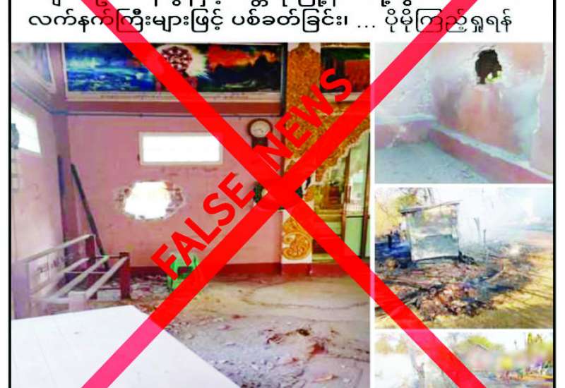 စစ်ကိုင်းတိုင်းဒေသကြီး ချောင်းဦးမြို့နယ် မန္တလေးတိုင်းဒေသကြီး ငါန်းဇွန်မြို့နယ်နှင့် မတ္တရာမြို့နယ်တို့တွင် လုံခြုံရေးတပ်ဖွဲ့ဝင်များက ဖေဖော်ဝါရီ ၁၇ ရက်နှင့် ၁၈ ရက်တို့တွင် လက်နက်ကြီးဖြင့် ပစ်ခတ်ခြင်းနှင့် လေကြောင်းတိုက်ခိုက်မှုများကြောင့် ပြည်သူများ ထိခိုက်သေဆုံးပြီး သာသနိကအဆောက်အအုံများ ပျက်စီးခဲ့ကြောင်း တရားမဝင်ပြည်ဖျက်မီဒီယာများက မဟုတ်မမှန် လုပ်ကြံဝါဒဖြန့်ဝေလျက်ရှိကြောင်း တွေ့ရှိရသည်။