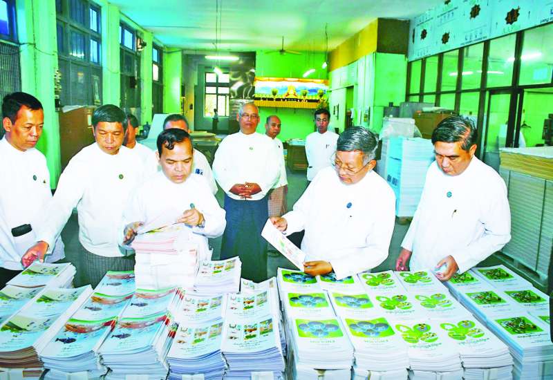 သာသနာရေးနှင့်ယဉ်ကျေးမှုဝန်ကြီးဌာန ပြည်ထောင်စုဝန်ကြီး ဦးတင်ဦးလွင်သည် ယနေ့မွန်းလွဲပိုင်းတွင် ရန်ကုန်တိုင်းဒေသကြီး မရမ်းကုန်းမြို့နယ် ကမ္ဘာအေးကုန်းမြေရှိ သာသနာရေးဦးစီးဌာန ပုံနှိပ်ထုတ်ဝေရေးဌာနခွဲ ကမ္ဘာအေးစာပုံနှိပ်တိုက်သို့ရောက်ရှိပြီး ပညာရေးဝန်ကြီးဌာနက ပုံနှိပ်ရန်အပ်နှံထားသော ၂၀၂၅-၂၀၂၆ ပညာသင်နှစ်အတွက် ကျောင်းသုံးဖတ်စာအုပ်များ ပုံနှိပ်ချုပ်လုပ်ခြင်းလုပ်ငန်းများကို ကြည့်ရှုစစ်ဆေးသည်။
