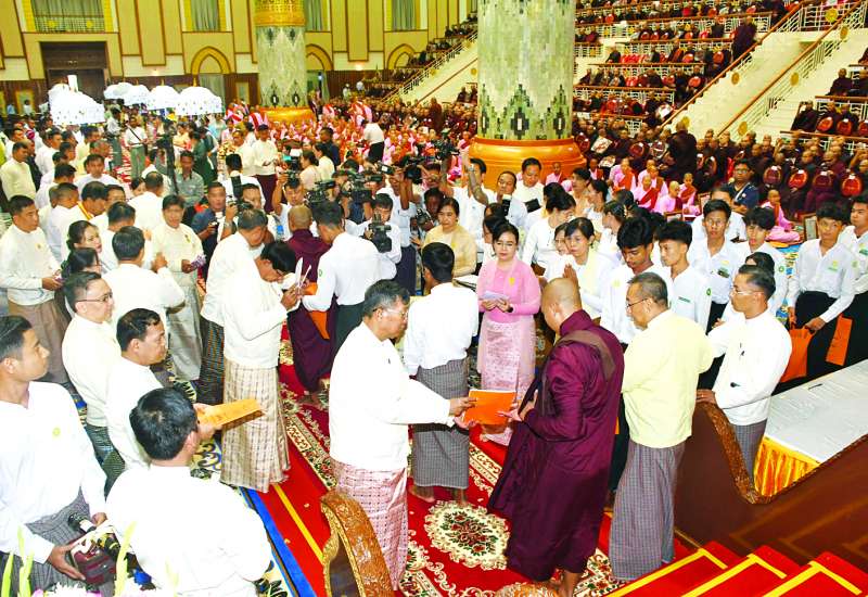 သာသနာရေးနှင့် ယဉ်ကျေးမှုဝန်ကြီးဌာန သာသနာရေးဦးစီးဌာနကကြီးမှူး၍ ရန်ကုန်တိုင်း ဒေသကြီးအစိုးရအဖွဲ့၏ ဦးဆောင်မှုဖြင့် လှူဒါန်းပူဇော်သည့် (၆၂) ကြိမ်မြာက် မဟာဘွဲ့နှင်းသဘင်အခမ်းအနားကို ယနေ့မွန်းလွဲပိုင်းတွင် ရန်ကုန်မြို့ သီရိမင်္ဂလာကမ္ဘာအေးကုန်းမြေ ဆဋ္ဌသံဂါယနာ မဟာပါသာဏလိုဏ်ဂူသိမ်တော်ကြီး၌ ကျင်းပသည်။