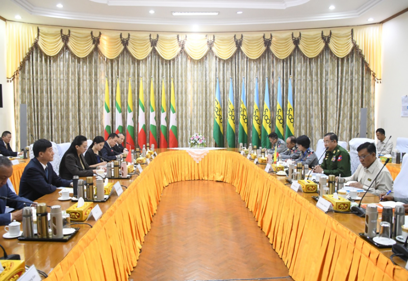 ပြည်ထဲရေးဝန်ကြီးဌာန ပြည်ထောင်စုဝန်ကြီး ဒုတိယဗိုလ်ချုပ်ကြီး ထွန်းထွန်းနောင်သည် မြန်မာနိုင်ငံဆိုင်ရာ တရုတ်ပြည်သူ့သမ္မတနိုင်ငံ သံအမတ်ကြီး H.E. Ms. Ma Jia (မစ္စမာကျား) နှင့် တရုတ်ပြည်သူ့လုံခြုံရေးဆိုင်ရာဝန်ကြီးဌာန လက်ထောက်ဝန်ကြီး Mr. Liu Zhong Yi (မစ္စတာလျိုကျုံးရီ) ဦးဆောင်သော ကိုယ်စားလှယ်အဖွဲ့အား ၂၀၂၅ ခုနှစ်၊ ဖေဖော်ဝါရီလ ၁၄ ရက်နေ့ နံနက် ၁၀ နာရီတွင် နေပြည်တော်၊ ရုံးအမှတ် (၁၀) ရှိ ပြည်ထဲရေးဝန်ကြီးဌာန၊ အစည်းအဝေးခန်းမ၌ လက်ခံတွေ့ဆုံခဲ့သည်။