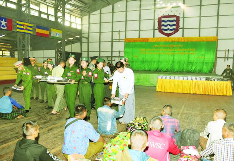 ပြည်သူ့စစ်မှုထမ်း သင်တန်းအမှတ်စဉ် (၁၀) သို့ တက်ရောက်မည့် ဧရာဝတီတိုင်းဒေသကြီးအတွင်းမှ နိုင်ငံ့သားကောင်းရတနာများအား ယနေ့နံနက်ပိုင်းတွင် ဧရာဝတီတိုင်းဒေသကြီး ဝန်ကြီးချုပ်ဦးတင်မောင်ဝင်း၊ အနောက်တောင်တိုင်းစစ်ဌာနချုပ် တိုင်းမှူးဗိုလ်မှူးချုပ် စိုးကျော်ထက်နှင့် တာဝန်ရှိသူများက တိုင်းစစ်ဌာနချုပ် အားကစားခန်းမ၌ သွားရောက်တွေ့ဆုံသည်။