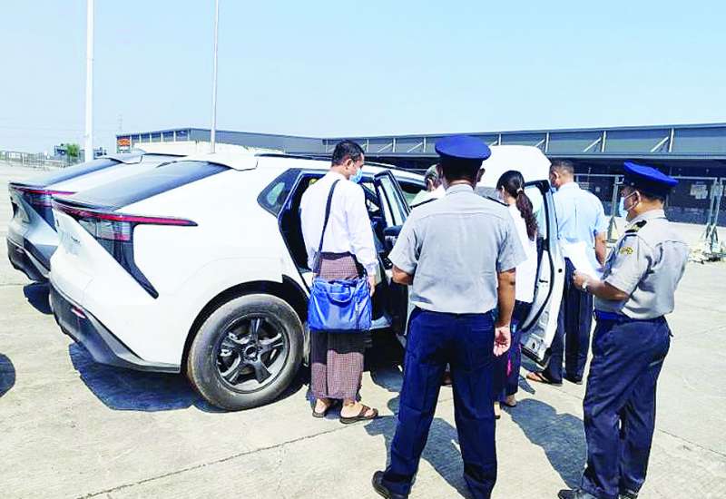 အမျိုးသားအဆင့် လျှပ်စစ်သုံးယာဉ်နှင့် ဆက်စပ်လုပ်ငန်းများ ဖွံ့ဖြိုးတိုးတက်ရေးဦးဆောင်ကော်မတီ၏ ခွင့်ပြုချက်ဖြင့် Amazing Auto Co., Ltd. မှ တင်သွင်းလာသော တရုတ်နိုင်ငံထုတ် GAC Toyota BZ4X အမျိုးအစား လျှပ်စစ်သုံးမော်တော်ယာဉ်များ၊ Asia Pacific Automaker Corporation Co., Ltd. မှ တင်သွင်းလာသော တရုတ်နိုင်ငံထုတ် Dongfeng Nissan Ariya အမျိုးအစား လျှပ်စစ်သုံးမော်တော်ယာဉ်များ၊ Golden Mandalar Co., Ltd. မှ တင်သွင်းလာသော တရုတ်နိုင်ငံထုတ် BYD Dolphin Mini အမျိုးအစား လျှပ်စစ်သုံးမော်တော်ယာဉ်များ၊ BYD Dolphin အမျိုးအစား လျှပ်စစ်သုံးမော်တော်ယာဉ်များနှင့် EV Power Co., Ltd. မှ တင်သွင်းလာသော တရုတ်နိုင်ငံထုတ် BYD Dolphin အမျိုးအစားလျှပ်စစ်သုံးမော်တော်ယာဉ်များသည် ရန်ကုန်ဆိပ်ကမ်းသို့ ရောက်ရှိလာသဖြင့် ယနေ့တွင် လုပ်ထုံးလုပ်နည်းနှင့်အညီ ထုတ်ယူခွင့်ပြုခဲ့ကြောင်း သိရသည်။