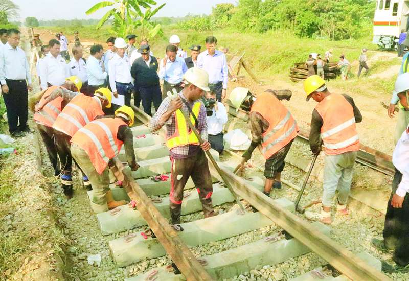 ဒုတိယဝန်ကြီးချုပ်နှင့် ပို့ဆောင်ရေးနှင့်ဆက်သွယ်ရေးဝန်ကြီးဌာန ပြည်ထောင်စုဝန်ကြီး ဗိုလ်ချုပ်ကြီး မြထွန်းဦးသည် ဒုတိယဝန်ကြီး ဦးအောင်မြိုင်၊ တာဝန်ရှိသူများနှင့်အတူ ယနေ့မွန်းလွဲပိုင်းတွင် ပျဉ်းမနားဘူတာမှ RBE ရထားဖြင့် လိုက်ပါ၍ ပျဉ်းမနား - တောင်ငူရထား လမ်းပိုင်း ၅၉ မိုင်အတွင်း ရထားများ အမြန်နှုန်းမြှင့်တင်ပြေးဆွဲ နိုင်ရေးအတွက် သံလမ်းနှင့် တံတားများ အဆင့်မြှင့်တင်နေမှုလုပ်ငန်းခွင်များကို စစ်ဆေးကြည့်ရှုသည်။