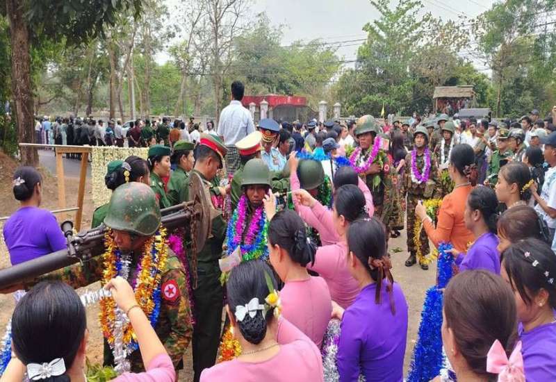 မန္တလေးတိုင်းဒေသကြီး၊ မတ္တရာမြို့နယ်၊ စဉ့်ကူးမြို့နယ်နှင့် သပိတ်ကျင်းမြို့နယ် ဒေသတစ်ဝိုက်ရှိ PDF အမည်ခံအကြမ်းဖက်အဖွဲ့များအား ရွပ်ရွပ်ချွံချွံတိုက်ပွဲဝင်၍ အောင်ပွဲအလီလီရယူနိုင်ခဲ့သော ရှေ့တန်းပြန်နိုင်ငံ့သားကောင်း တပ်မတော်သားများအား ဂုဏ်ပြုကြိုဆိုခြင်းကို ယနေ့နံနက်ပိုင်းတွင် ရန်ကုန်တိုင်းဒေသကြီး၊ မှော်ဘီမြို့နယ်ရှိ နယ်မြေခံတပ်ရင်း၌ ပြုလုပ်ရာ မှော်ဘီတပ်နယ်မှ တာဝန်ရှိသူများနှင့် ဌာနဆိုင်ရာတာဝန်ရှိသူများ၊ ကျောင်းသား/ကျောင်းသူများ၊ အနုပညာရှင်များနှင့် ဒေသခံပြည်သူများ ပါဝင်တက်ရောက် ဂုဏ်ပြုကြိုဆိုကြသည်။