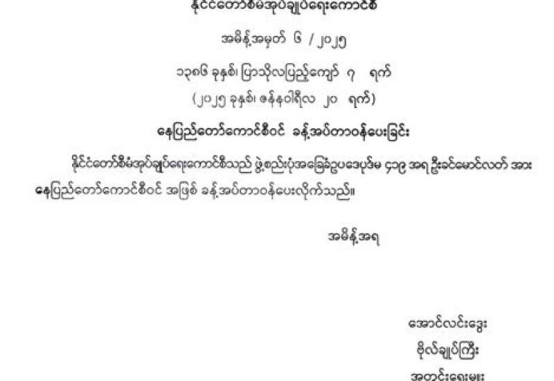 နေပြည်တော်ကောင်စီဝင် ခန့်အပ်တာဝန်ပေးခြင်း