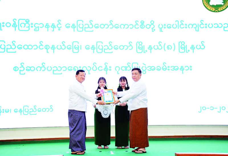 ပညာရေးဝန်ကြီးဌာနနှင့် နေပြည်တော်ကောင်စီတို့ ပူးပေါင်းကျင်းပသည့် ပြည်ထောင်စုနယ်မြေ နေပြည်တော် ရှစ်မြို့နယ် စဉ်ဆက်ပညာရေးလုပ်ငန်း ဂုဏ်ပြုပွဲအခမ်းအနားကို ယနေ့နံနက်ပိုင်းက နေပြည်တော်ကောင်စီ ဇမ္ဗူသီရိခန်းမ၌ ကျင်းပသည်။