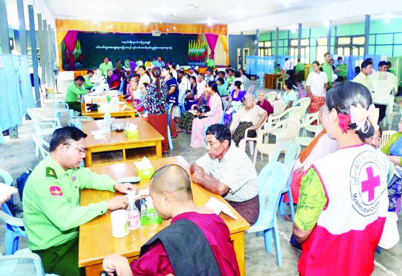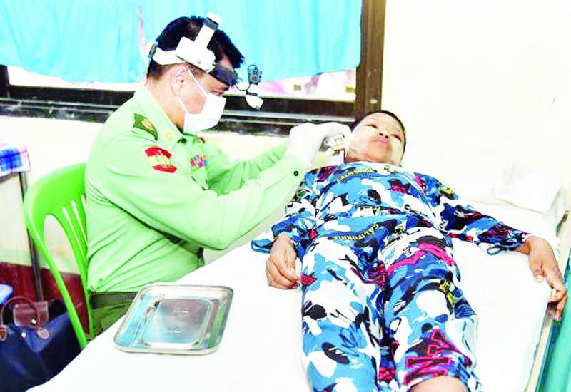 ဧရာဝတီမြစ်ကြောင်းတစ်လျှောက်ရှိ ဒေသခံပြည်သူများအား ကျန်းမာရေးစောင့်ရှောက်မှုလုပ်ငန်းများ ဆောင်ရွက်ပေးရန်အတွက် တပ်မတော်မြစ်တွင်းသွားဆေးရုံရေယာဉ် (ရွှေပုဇွန်)၊ မြစ်ရေယာဉ် (စကု) တို့နှင့်အတူ လိုက်ပါလာသည့် တပ်မတော်မှ ပါရဂူများ၊ ဆေးမှူးများ၊ သူနာပြုများပါဝင်သော နယ်လှည့်အထူးကုဆေးအဖွဲ့သည် ယနေ့တွင် ဧရာဝတီတိုင်းဒေသကြီး၊ ကျိုက်လတ်မြို့နယ်၊ သပြုဆိပ်ကျေးရွာ၊ ညောင်ချောင်းဘုန်းတော်ကြီးကျောင်းရှိ ရတနာသုခဓမ္မဗိမာန်တော်တွင် အခြေပြု၍ အဆိုပါမြို့နှင့် ပတ်ဝန်းကျင်ကျေးရွာများမှ ဒေသခံပြည်သူ ၄၂၄ ဦးတို့အား ကျန်းမာရေးစောင့်ရှောက်မှုလုပ်ငန်းများ ဆက်လက်ဆောင်ရွက်ပေးသည်။
