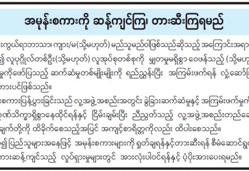 အမုန်းစကားကို ဆန့်ကျင်ကြ၊ တားဆီးကြရမည်