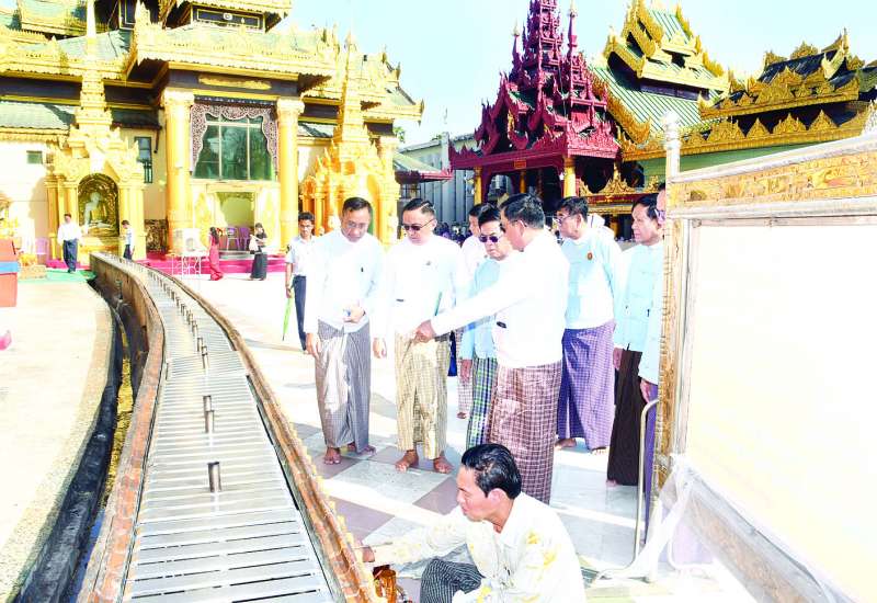 စေတိယင်္ဂပရိယတ္တိ ဓမ္မာနုဂ္ဂဟ စာလျှောက်မေးပွဲ နှစ် (၁ဝဝ) ပြည့် အထိမ်းအမှတ်အနေဖြင့် မန္တလေးတိုင်းဒေသကြီး မဟာအောင်မြေမြို့နယ်နေ အောင်ရွှေနန်းဟိန်း ကျောက်မျက်ကုမ္ပဏီပိုင်ရှင် ဦးဇော်ဌေး+ဒေါ်နွဲ့နွဲ့ဝင်း မိသားစုတို့က ကျောက်စိမ်းဖြင့် ထုလုပ်ထားသည့် အချင်း လက်မ ၃၀ ၊ ထုသုံးလက်မခွဲအရွယ်ရှိ “စေတိ ယင်္ဂဏ စာလျှောက်မေးပွဲတံဆိပ်တော်” များအား ရွှေတိဂုံစေတီ တော်ဗုဒ္ဓပြတိုက်သို့ လွှဲပြောင်းပေးအပ်လှူဒါန်းပွဲအခမ်းအနားကို ယနေ့နံနက်ပိုင်းတွင် ရွှေတိဂုံစေတီတော်ရင်ပြင် အနောက်ဘက်ဗုဒ္ဓပြတိုက်၌ ကျင်းပသည်။