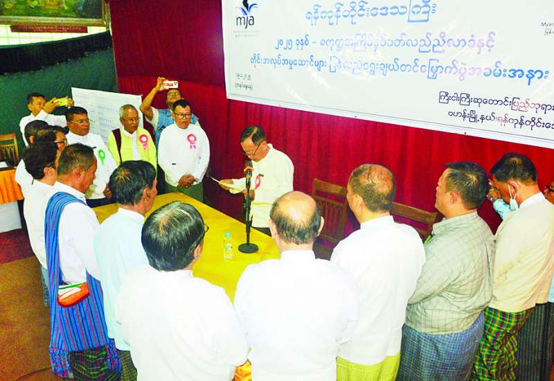 ရန်ကုန်တိုင်းဒေသကြီး မြန်မာနိုင်ငံသတင်းစာဆရာအသင်း ၂၀၂၅ ခုနှစ် စတုတ္ထအကြိမ် နှစ်ပတ်လည်ညီလာခံနှင့် တိုင်းအလုပ်အမှုဆောင်များ ပြန်လည်ရွေးချယ်တင်မြှောက်ပွဲအခမ်းအနားကို ယနေ့မွန်းလွဲပိုင်းတွင် ဗဟန်းမြို့နယ် ကြီးငါးကြီးဆုတောင်းပြည့်ဘုရားရင်ပြင်တော်၌ ကျင်းပသည်။