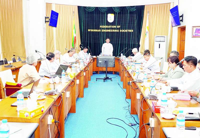 မြန်မာနိုင်ငံအဆောက်အအုံဆိုင်ရာ စံချိန်စံညွှန်း လမ်းညွှန်ချက်များ (Myanmar National Building Code) အကောင်အထည်ဖော်ရေး ဦးစီးကော်မတီ အစည်းအဝေး (၁/၂၀၂၅) ကို ယနေ့တွင် ရန်ကုန်မြို့ လှိုင်မြို့နယ်ရှိ မြန်မာနိုင်ငံအင်ဂျင်နီယာအသင်းချုပ်ရုံး Conference Room ၌ ကျင်းပပြုလုပ်သည်။