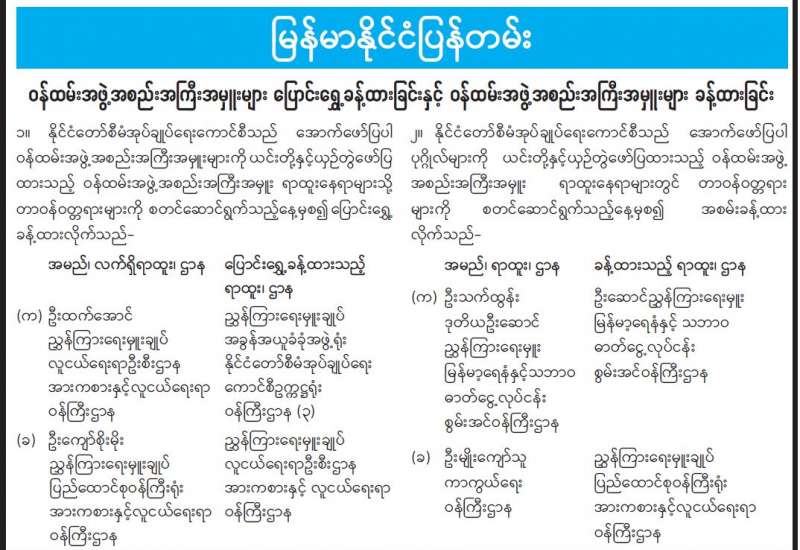 ဝန်ထမ်းအဖွဲ့အစည်းအကြီးအမှူးများ ပြောင်းရွှေ့ခန့်ထားခြင်းနှင့် ဝန်ထမ်းအဖွဲ့အစည်းအကြီးအမှူးများ ခန့်ထားခြင်း