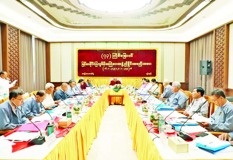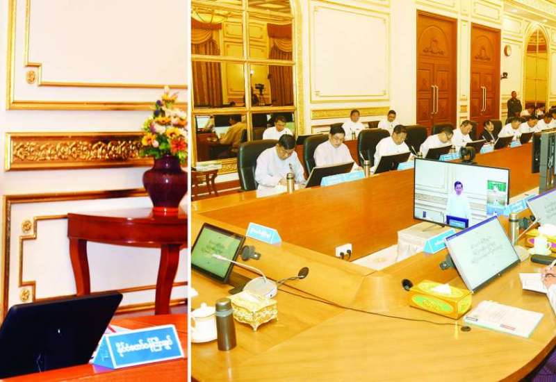ပြည်ထောင်စုအစိုးရအဖွဲ့အစည်းအဝေးကို ယနေ့နံနက်ပိုင်းတွင် နေပြည်တော်ရှိ နိုင်ငံတော်စီမံအုပ်ချုပ်ရေးကောင်စီဥက္ကဋ္ဌရုံး အစည်းအဝေးခန်းမ၌ ကျင်းပရာ နိုင်ငံတော်စီမံအုပ်ချုပ်ရေးကောင်စီဥက္ကဋ္ဌ နိုင်ငံတော်ဝန်ကြီးချုပ် ဗိုလ်ချုပ်မှူးကြီး မင်းအောင်လှိုင် တက်ရောက်အမှာစကားပြောကြားသည်။