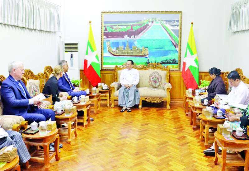 ရင်းနှီးမြှုပ်နှံမှုနှင့် နိုင်ငံခြားစီးပွားဆက်သွယ်ရေးဝန်ကြီးဌာန ပြည်ထောင်စုဝန်ကြီး ဒေါက်တာကံဇော်သည် ကုလသမဂ္ဂစီမံကိန်းဝန်ဆောင်မှုရုံး (UNOPS)၏ အာရှဒေသဆိုင်ရာ ညွှန်ကြားရေးမှူး Mr. Sanjay Mathur နှင့်အဖွဲ့အား ယနေ့နံနက်ပိုင်းတွင် အဆိုပါဝန်ကြီးဌာန ရုံးအမှတ် (၁) ၌ လက်ခံတွေ့ဆုံသည်။
