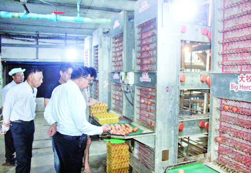 စိုက်ပျိုးရေး၊ မွေးမြူရေးနှင့် ဆည်မြောင်းဝန်ကြီးဌာန ဒုတိယဝန်ကြီး ဒေါက်တာအောင်ကြီးသည် ယမန်နေ့က ရန်ကုန်တိုင်းဒေသကြီး လှည်းကူးမြို့နယ် ညောင်နှစ်ပင် မွေးမြူရေးဇုန် (၃) ရှိ SUNJIN Myanmar Co.,Ltd. ၏ အအေးခန်းမွေးမြူရေးစနစ် (Cooling System) မျိုး ဝက်မွေးမြူရေးခြံသို့ သွားရောက်ကြည့်ရှုရာ ခြံတာဝန်ခံက မွေးမြူရေးခြံအတွင်း မျိုးဝက်မ အကောင် ၁၂၀၀၊ မျိုးဝက်သိုး အကောင် ၂၀ မွေးမြူထားရှိမှုနှင့် တစ်နှစ်လျှင် သားပေါက်ကောင်ရေ ၃၀၀၀၀ ကျော် ရောင်းတမ်းဝင်အဖြစ် ဖြန့်ဖြူးပေးနေမှုတို့ကို ရှင်းလင်းတင်ပြသည်။