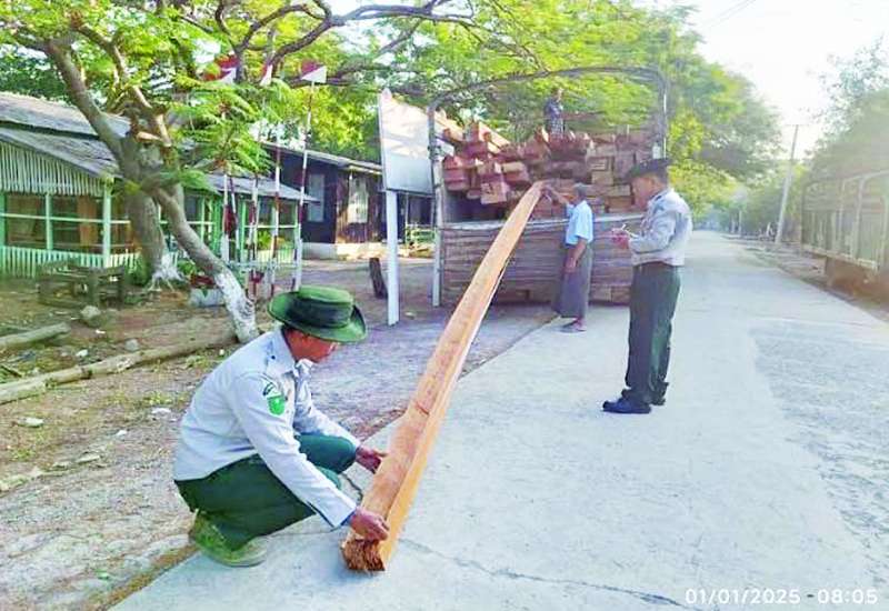 သယံဇာတနှင့်သဘာဝပတ်ဝန်းကျင်ထိန်းသိမ်းရေးဝန်ကြီးဌာန သစ်တောဦးစီးဌာနသည် တရားမဝင် သစ်နှင့် သစ်တောထွက်ပစ္စည်းများ ရှာဖွေဖော်ထုတ်ဖမ်းဆီးရေးအား ပြည်သူပူးပေါင်းပါဝင်မှုဖြင့် လူထုအခြေပြုစောင့်ကြပ်ကြည့်ရှုသတင်းပို့စနစ် (Community Monitoring and Reporting System - CMRS) အပါအဝင် နည်းလမ်းမျိုးစုံဖြင့် အကောင်အထည်ဖော်ဆောင်ရွက်လျက်ရှိရာ ဒီဇင်ဘာ ၃၀ ရက်မှ ဇန်နဝါရီ ၅ ရက်အထိ နေပြည်တော်၊ ပြည်နယ်နှင့် တိုင်းဒေသကြီး သစ်တောဦးစီးဌာနများမှ ပေးပို့လာသော စာရင်းများအရ တရားမဝင် ကျွန်း ၁၄ ဒသမ ၇၅၆၄ တန်၊ သစ်မာ ၃ ဒသမ ၀၆၇၆ တန်၊ အခြား ၂၀ ဒသမ ၇၄၃၆ တန် စုစုပေါင်း ၃၈ ဒသမ ၅၆၇၆ တန်၊ ယာဉ်/ ယန္တရား ရှစ်စီး၊ တရားခံ ၂၀ ဖမ်းဆီးရမိကြောင်း မြန်မာနိုင်ငံ သစ်တောဦးစီးဌာနမှ သိရသည်။
