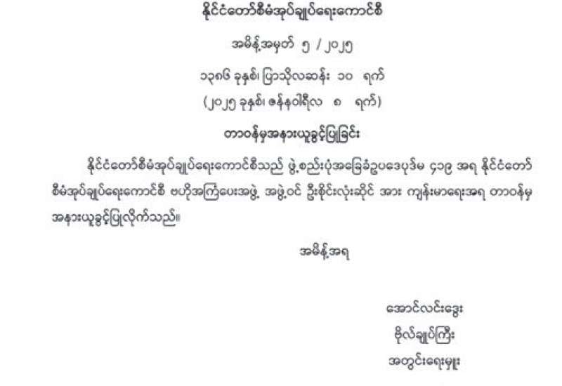 လျှပ်စစ်နှင့်စွမ်းအင်ကဏ္ဍ ဖွံ့ဖြိုးတိုးတက်ရေးကို အရှိန်အဟုန်မြှင့် ဆောင်ရွက်နိုင်ရန်အတွက် ဖွဲ့စည်းတာဝန်ပေးအပ်ခဲ့သည့် လျှပ်စစ်နှင့်စွမ်းအင်ဖွံ့ဖြိုးရေးကော်မရှင်၏ (၁/၂၀၂၅) အစည်းအဝေးကို ယနေ့ မွန်းလွဲပိုင်းတွင် နေပြည်တော်ရှိ နိုင်ငံတော်စီမံအုပ်ချုပ်ရေးကောင်စီရုံး အစည်းအဝေးခန်းမ၌ ကျင်းပသည်။