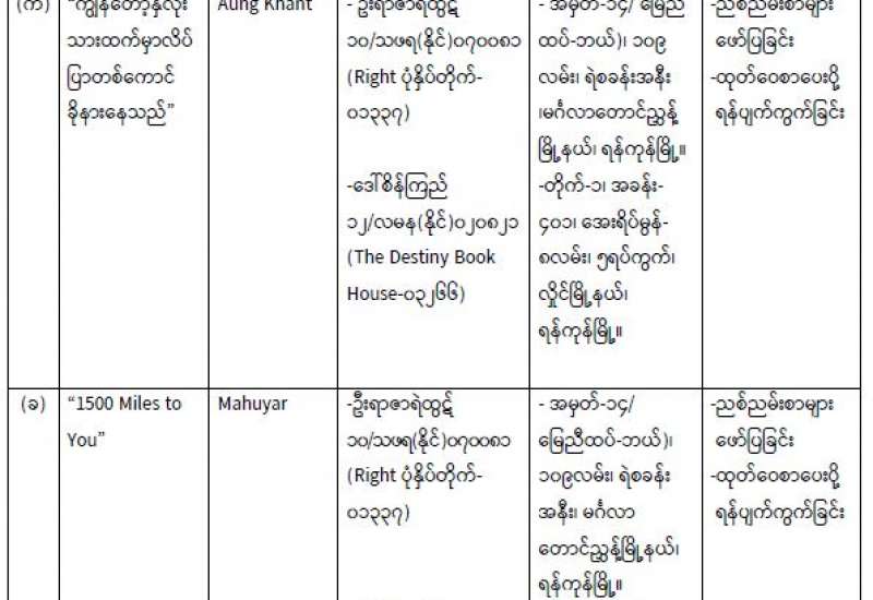 ၁။ ပြန်ကြားရေးဝန်ကြီးဌာနသည် ၂၀၁၄ ခုနှစ် ပုံနှိပ်ခြင်းနှင့်ထုတ်ဝေခြင်းလုပ်ငန်းဥပဒေ၊ နည်းဥပဒေများနှင့်အညီ ပုံနှိပ်ခြင်းလုပ်ငန်း၊ ထုတ်ဝေခြင်းလုပ်ငန်းများကို ကြီးကြပ်ဆောင်ရွက်လျက်ရှိပါသည်။ ထိုသို့ဆောင်ရွက်လျက်ရှိရာတွင် အောက်ဖော်ပြပါ ပုံနှိပ်သူနှင့် ထုတ်ဝေသူများသည် ပုံနှိပ်ခြင်းနှင့် ထုတ်ဝေခြင်းလုပ်ငန်းဥပဒေပုဒ်မ ၈၊ ပုဒ်မခွဲ (ဂ) ပါ ညစ်ညမ်းစာများကို ဖော်ပြခြင်း စည်းကမ်းချက်ကို ဖောက်ဖျက်၍ ဟီရိဩတ္တပ္ပကင်းသော၊ မြန်မာ့လူ့အဖွဲ့အစည်းက လက်မခံသော၊လူငယ်များ၏ တွေးခေါ်မြော်မြင်မှုနှင့်ခံစားနားလည်မှုကို လွဲမှားစေနိုင်သောအကြောင်းအရာများကို ပုံနှိပ်၊ ထုတ်ဝေဖြန့်ချိခဲ့ကြောင်း တွေ့ရှိရပါသည်-