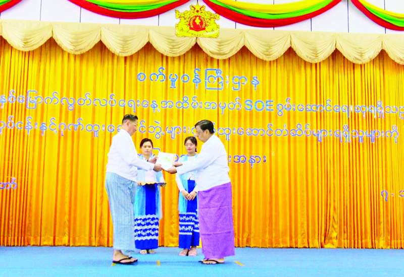 (၇၇) နှစ်မြောက် လွတ်လပ်ရေးနေ့အထိမ်းအမှတ် နိုင်ငံပိုင်လုပ်ငန်း (SOE) စွမ်းဆောင်ရည် ဆုရရှိသည့်လုပ်ငန်းနှင့် ဂုဏ်ထူးဆောင်ဘွဲ့နှင့် ဂုဏ်ထူးဆောင်တံဆိပ်ရရှိသူများအား ဂုဏ်ပြုသည့် အခမ်းအနားကို ယနေ့နံနက်ပိုင်းတွင် စက်မှုဝန်ကြီးဌာနရုံးအမှတ် (၃၀) ရှိ အစည်းအဝေးခန်းမ၌ ကျင်းပသည်။