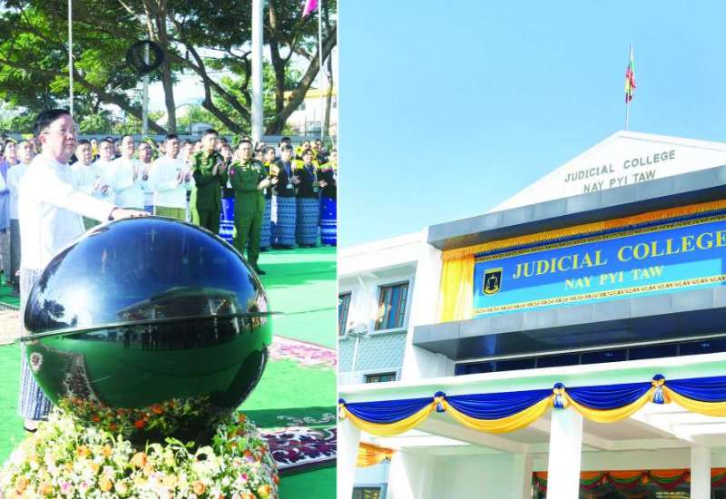 နေပြည်တော်ကောင်စီနယ်မြေ၊ ဥတ္တရသီရိမြို့နယ်ရှိ ပြည်ထောင်စုတရားလွှတ်တော်ချုပ်၊ Judicial College အဆောက်အဦသစ် ဖွင့်ပွဲအခမ်းအနားကို ယနေ့နံနက်ပိုင်းတွင် ကျင်းပပြုလုပ်ရာ နိုင်ငံတော်စီမံအုပ်ချုပ်ရေးကောင်စီဥက္ကဋ္ဌ နိုင်ငံတော်ဝန်ကြီးချုပ် ဗိုလ်ချုပ်မှူးကြီး မင်းအောင်လှိုင်ကိုယ်စား နိုင်ငံတော်စီမံအုပ်ချုပ်ရေးကောင်စီအတွင်းရေးမှူး ဗိုလ်ချုပ်ကြီး အောင်လင်းဒွေး တက်ရောက်ဖွင့်လှစ်သည်။