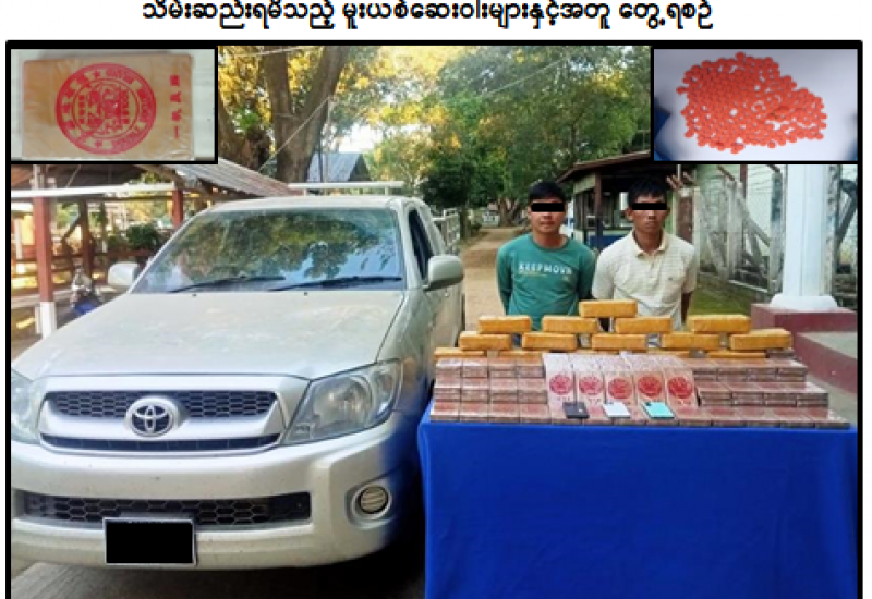မူးယစ်ဆေးဝါးတားဆီးနှိမ်နင်းရေးရဲတပ်ဖွဲ့မှ တပ်ဖွဲ့ဝင်များ ပါဝင်သော ပူးပေါင်းအဖွဲ့သည် ၂၀၂၄ ခုနှစ်၊ ဒီဇင်ဘာလ ၂၈ ရက်နေ့ နံနက် ၁၁ နာရီခွဲအချိန် ရှမ်းပြည်နယ် (တောင်ပိုင်း)၊ မိုင်းပန်မြို့နယ်၊ တာဆန်းကျေးရွာအနီးတွင် မိုင်းပန်မြို့ဘက်မှ မိုင်းတုံမြို့ဘက်သို့ စိုင်းနွံဟန် (ခ) စိုင်းနွံလျန် မောင်းနှင်ပြီး စိုင်းစံညွန့် လိုက်ပါလာသည့် VIGO မော်တော်ယာဉ်ကို သတင်းအရရှာဖွေရာ ယာဉ်၏ ကြမ်းခင်းအံဝှက်အတွင်း သိုဝှက်သယ်ဆောင်လာသည့် ဒေသကာလတန်ဖိုးငွေကျပ် သိန်း ၅,၄၀၀ ကျော်တန်ဖိုးရှိ ဘိန်းဖြူဘလောက်တုံး ၁၂၀ တုံး၊ အလေးချိန် ၄၀ ဒသမ ၂ ကီလိုနှင့် စိတ်ကြွရူးသွပ်ဆေးပြား ၂ သိန်းတို့အား သိမ်းဆည်းရမိခဲ့ပြီး စစ်ဆေးဖော်ထုတ်ချက်အရ သိမ်းဆည်းရမိမူးယစ်ဆေးဝါးများအား နမ့်စန်မြို့နယ်မှ မိုင်းတုံမြို့နယ်သို့ သယ်ဆောင်ရောင်းဝယ်ခြင်းဖြစ်ကြောင်း သိရှိရသဖြင့် ၎င်းတို့အား ဥပဒေအရ အရေးယူထားရှိပြီး ကွင်းဆက်ပြစ်မှုကျူးလွန်သူများအား ဆက်လက်စစ်ဆေးဖော်ထုတ်လျက်ရှိကြောင်း မြန်မာနိုင်ငံရဲတပ်ဖွဲ့မှ သတင်းရရှိသည်။
