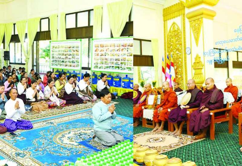 ပြည်ထောင်စုနယ်မြေ နေပြည်တော် ဇမ္ဗူသီရိမြို့နယ်ရှိ ဓာတုစယ ဓာတ်ပေါင်းစု စေတီတော်မြတ်ကြီး၏ (၄၇) ကြိမ်မြောက် အသံမစဲမဟာပဋ္ဌာန်း ရွတ်ဖတ်ပူဇော်ပွဲ အဖွင့်မင်္ဂလာအခမ်းအနားကို ယနေ့နံနက် ၈ နာရီတွင် ဓာတုစယဓာတ်ပေါင်းစုစေတီတော်မြတ်ကြီး ပရိဝုဏ်အတွင်းရှိ မဟာမြတ်မုနိ ရုပ်ရှင်တော်မြတ် အဘိသန္နဗိမာန်တော်၌ကျင်းပရာ နေပြည်တော်ဇမ္ဗူသီရိမြို့နယ် မဟာဝိဇိတာရုံ ကျောင်းတိုက်၏ ပဓာနနာယက ဆရာတော်ဂန္ထဝါစကပဏ္ဍိတ ဘဒ္ဒန္တကေသရိန္ဒအမှူးပြုသော သံဃာတော်အရှင်သူမြတ်များ ကြွရောက်တော်မူကြပြီး နေပြည်တော်ကောင်စီဥက္ကဋ္ဌ မြို့တော်ဝန်ဦးသန်းထွန်းဦး၊ နေပြည်တော်ကောင်စီဝင်များ၊ နေပြည်တော် စည်ပင်သာယာရေးကော်မတီ ဒုတိယမြို့တော်ဝန်နှင့် တာဝန်ရှိသူများ၊ အလှူရှင်ဧည့်ပရိသတ်များ တက်ရောက်ကြည်ညိုကြသည်။