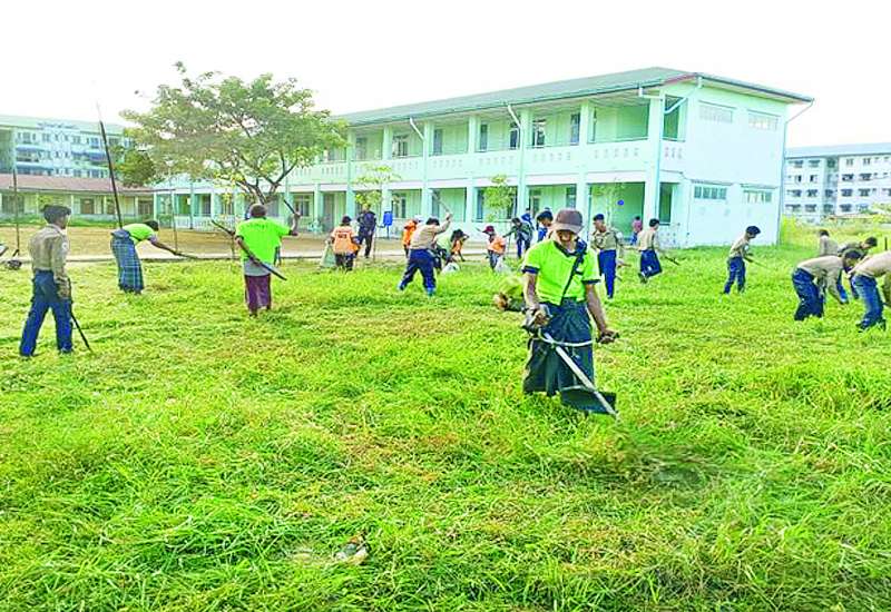 ၂၀၂၄ - ၂၀၂၅ ပညာသင်နှစ် တွင် တက်ရောက်ပညာသင်ကြားလျက်ရှိသည့် ကျောင်းသားကျောင်းသူများ အဆင်ပြေချောမွေ့စွာ ပညာသင်ကြားနိုင်ရေးနှင့် စာသင်ကျောင်းများ ဥပဓိရုပ် ကောင်းမွန်စေရေးအတွက် တိုင်းဒေသကြီးနှင့်ပြည်နယ်အသီးသီးရှိ အခြေခံပညာကျောင်းများနှင့် တက္ကသိုလ်များတွင် ကျောင်းပတ်ဝန်းကျင်သန့်ရှင်းသာယာလှပရေးလုပ်ငန်းများကို စုပေါင်းဆောင်ရွက်ပေးလျက်ရှိသည်။