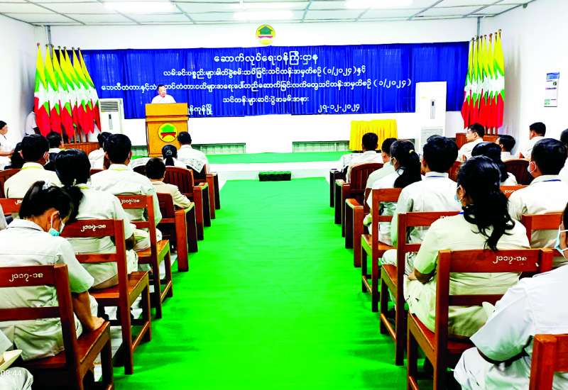 လမ်းခင်းပစ္စည်းများ ဓာတ်ခွဲစမ်းသပ်ခြင်း သင်တန်းအမှတ်စဉ် (၁/၂၀၂၄) နှင့် ဘေလီတံတားနှင့် သံပေါင်တံတားငယ်များ အရေးပေါ်တည်ဆောက်ခြင်း လက်တွေ့သင်တန်း အမှတ်စဉ် (၁/၂၀၂၄) သင်တန်းဆင်းပွဲကို ယမန်နေ့နံနက်ပိုင်းက ရန်ကုန်တိုင်းဒေသကြီးရှိ ဆောက်လုပ်ရေးဝန်ကြီးဌာန ဗဟို သင်တန်းကျောင်း (သုဝဏ္ဏ)၌ ကျင်းပသည်။