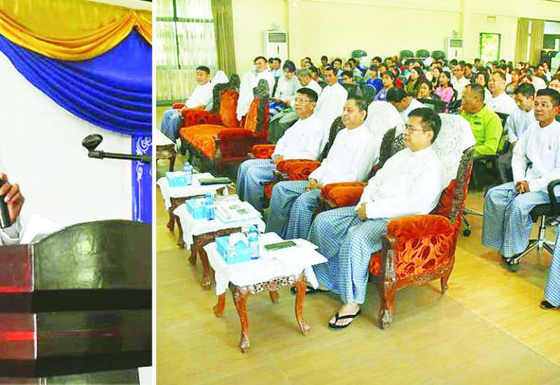 (၅၇) ကြိမ်မြောက် တောင်သူနည်းပညာဆွေးနွေးပွဲကို ယနေ့နံနက်ပိုင်းက နေပြည်တော် ရေဆင်းရှိ စိုက်ပျိုးရေးသုတေသနဦးစီးဌာန စုဝေးဆောင်ခန်းမ၌ ရာသီဥတုပြောင်းလဲမှုနှင့် လိုက်လျောညီသော သီးနှံစိုက်ပျိုးထုတ်လုပ်မှုခေါင်းစဉ်ဖြင့် ကျင်းပသည်။
