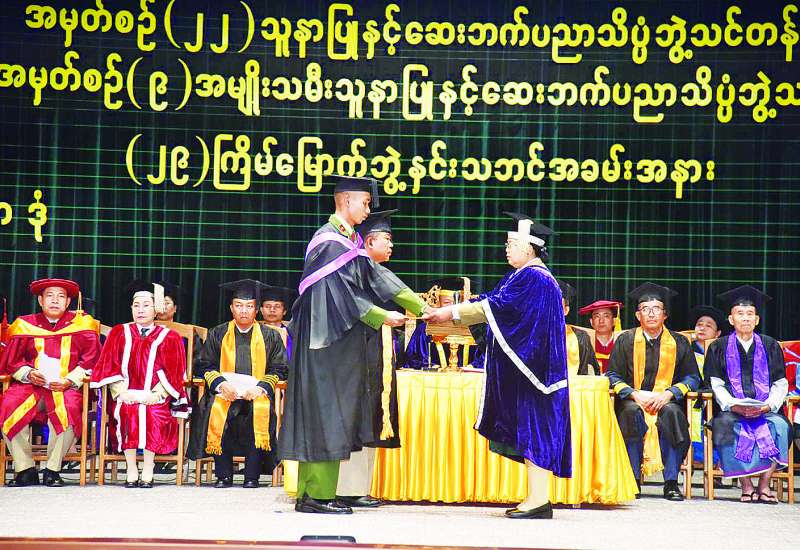 တပ်မတော်သူနာပြုနှင့် ဆေးဘက်ပညာတက္ကသိုလ်၏ (၂၉) ကြိမ်မြောက် ဘွဲ့နှင်းသဘင်အခမ်းအနားကို ယနေ့မွန်းလွဲပိုင်းတွင် ရန်ကုန်တိုင်းဒေသကြီး မင်္ဂလာဒုံမြို့နယ်ရှိ တပ်မတော်သူနာပြုနှင့် ဆေးဘက်ပညာတက္ကသိုလ်ဘွဲ့နှင်းသဘင်ခန်းမ၌ ကျင်းပရာ တပ်မတော်သူနာပြုနှင့် ဆေးဘက်ပညာတက္ကသိုလ် ကျောင်းအုပ်ကြီး ဗိုလ်မှူးချုပ် ဝင်းဗိုလ်နှင့် ပညာရေးအဖွဲ့ဝင်များ စုံညီစွာတက်ရောက်ကြသည်။