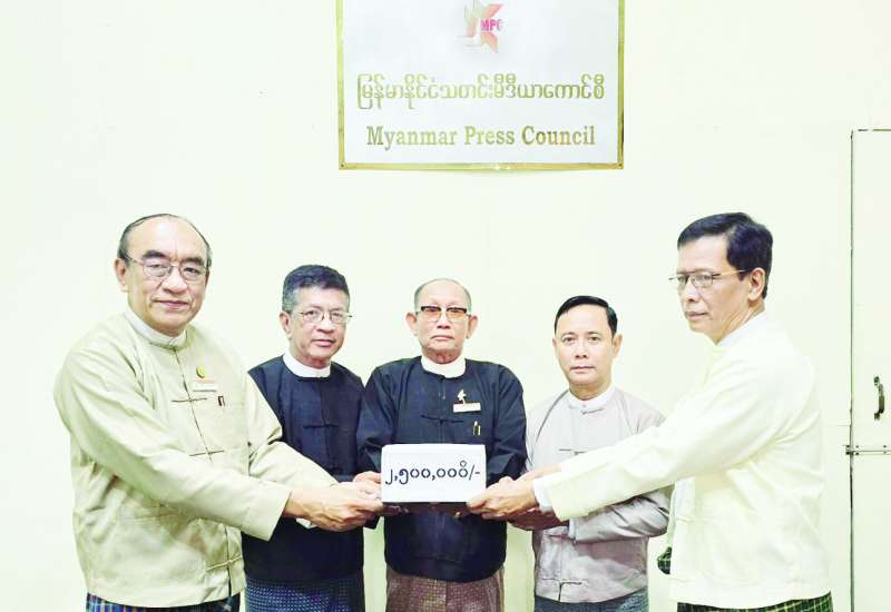 မြန်မာနိုင်ငံသတင်းမီဒီယာကောင်စီ၏ သက်ကြီးသတင်းစာပညာရှင်ကြီးများအား ပူဇော်ကန်တော့ခြင်းအစီအစဉ်အတွက် ဒီဇင်ဘာ ၂၇ ရက် မွန်းလွဲပိုင်းက သတင်းမီဒီယာဖွံ့ဖြိုးရေးကော်မတီအဖွဲ့ခေါင်းဆောင် ဦးခင်မောင်ကျော်ဒင်သို့ မြန်မာနိုင်ငံသတင်းမီဒီယာကောင်စီဥက္ကဋ္ဌ ဒေါက်တာတင်ထွန်းဦးက ကောင်စီဝင်များအားလုံး၏ နှစ်သစ်ဦးစုပေါင်း လှူဒါန်းငွေကျပ် ၂၅၀၀၀၀၀ ကို သတင်းမီဒီယာကောင်စီရုံး၌ လှူဒါန်းပေးအပ်သည်။
