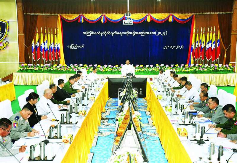 အကြမ်းဖက်မှုတိုက်ဖျက်ရေးဗဟိုအဖွဲ့အစည်းအဝေး (၂၀၂၄) ကို ယနေ့မွန်းလွဲ ၁ နာရီတွင် နေပြည်တော်ရှိ မြန်မာနိုင်ငံရဲတပ်ဖွဲ့ဌာနချုပ် အရိန္ဒမာခန်းမ၌ ကျင်းပရာ နိုင်ငံတော်စီမံအုပ်ချုပ်ရေးကောင်စီအဖွဲ့ဝင် အကြမ်းဖက်မှုတိုက်ဖျက်ရေးဗဟိုအဖွဲ့ဥက္ကဋ္ဌ ပြည်ထဲရေးဝန်ကြီးဌာန ပြည်ထောင်စုဝန်ကြီး ဒုတိယဗိုလ်ချုပ်ကြီး ရာပြည့်၊ ဗဟိုအဖွဲ့ဒုတိယဥက္ကဋ္ဌများ၊ အဖွဲ့ဝင်များ၊ လုပ်ငန်းကော်မတီနှင့် လုပ်ငန်းအဖွဲ့များမှ ဥက္ကဋ္ဌများနှင့် အတွင်းရေးမှူးများ၊ အဖွဲ့ဝင်များ၊ မြန်မာနိုင်ငံရဲတပ်ဖွဲ့ ရဲချုပ်နှင့် မြန်မာနိုင်ငံရဲတပ်ဖွဲ့ဌာနချုပ်မှ ရဲအရာရှိကြီးများ၊ နေပြည်တော်/ တိုင်းဒေသကြီး/ ပြည်နယ်ရဲတပ်ဖွဲ့များမှ ရဲတပ်ဖွဲ့မှူးများ တက်ရောက်ကြသည်။