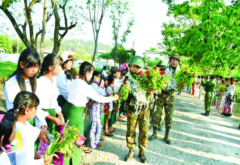 နိုင်ငံတော်တည်ငြိမ်ရေးနှင့် နယ်မြေအေးချမ်းသာယာရေးအတွက် ကရင်ပြည်နယ်၊ ကော့ကရိတ်မြို့နယ်နှင့် သင်္ကန်းညီနောင်မြို့နယ် ဒေသတစ်ဝိုက် နယ်မြေလုံခြုံရေးတာဝန်များကို ထမ်းဆောင်၍ ပြန်လည် ရောက်ရှိလာသော ရှေ့တန်းပြန်နိုင်ငံ့သားကောင်း တပ်မတော်သားများအား ဂုဏ်ပြုကြိုဆိုခြင်းကို ယနေ့ညနေပိုင်းတွင် ရှမ်းပြည်နယ်(တောင်ပိုင်း)၊ ကလောမြို့ရှိ နယ်မြေခံတပ်ရင်း၌ပြုလုပ်ရာ အရှေ့ပိုင်းတိုင်းစစ်ဌာနချုပ် တိုင်းမှူး ဗိုလ်မှူးချုပ် ကျော်နိုင်ဦးနှင့် တာဝန်ရှိသူများ၊ အရာရှိ၊ စစ်သည်၊ မိသားစုဝင်များ၊ ဌာနဆိုင်ရာတာဝန်ရှိသူများ၊ တိုင်းရင်းသားရိုးရာ ယဉ်ကျေးမှုအဖွဲ့များ၊ ဒေသခံပြည်သူများ၊ ဆရာ ဆရာမများ၊ ကျောင်းသား ကျောင်းသူများ ပါဝင်တက်ရောက်ဂုဏ်ပြုကြိုဆိုကြသည်။