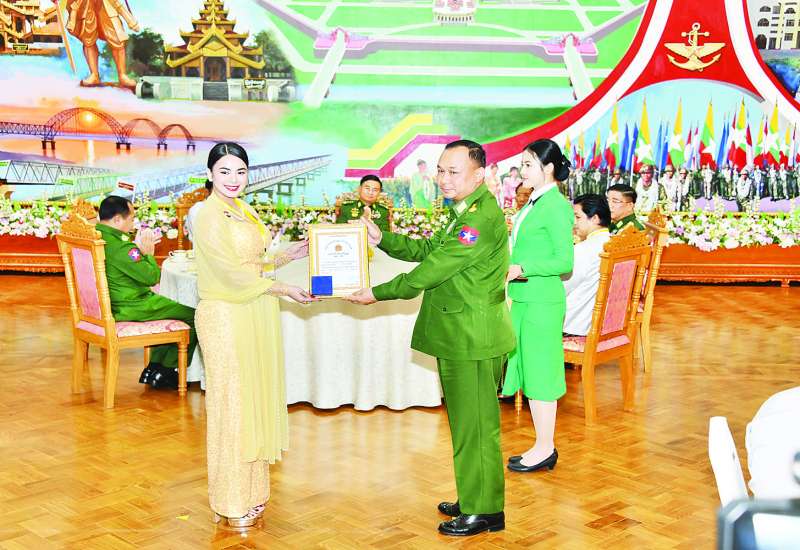 (၈၁) နှစ်မြောက်တပ်မတော်နေ့ ဂုဏ်ပြုဇာတ်လမ်းဖြစ်သည့် “တိမ်ပင်လယ်ခရီးကြမ်း” ဇာတ်လမ်းတွင် ပါဝင်သရုပ်ဆောင်ခဲ့ကြသည့် အနုပညာရှင်များနှင့် ဂုဏ်ပြုစစ်ချီသီချင်း၊ စစ်သည်တေးသီချင်း၊ ကဗျာနှင့် ဝတ္ထုစာမူဆုရရှိသူ စာပေပညာရှင်များအား ဂုဏ်ပြုဆုနှင့် ဂုဏ်ပြုမှတ်တမ်းလွှာများပေးအပ်ပွဲကို ယနေ့ညနေပိုင်းတွင် နေပြည်တော်ရှိ ဘုရင့်နောင် ရိပ်သာဧည့်ခန်းမဆောင်၌ ကျင်းပပြုလုပ်ရာ နိုင်ငံတော်လုံခြုံရေးနှင့် အေးချမ်းသာယာရေး ကော်မရှင်အဖွဲ့ဝင် ညှိနှိုင်းကွပ်ကဲရေးမှူး(ကြည်း၊ ရေ၊ လေ) ဗိုလ်ချုပ်ကြီး ကျော်စွာလင်း၊ ကာကွယ်ရေးဦးစီးချုပ်ရုံးမှ တပ်မတော်အရာရှိကြီးများ၊ နေပြည်တော်တိုင်းစစ်ဌာနချုပ်တိုင်းမှူးနှင့် တာဝန်ရှိသူများ၊ ဖိတ်ကြားထားသူများ တက်ရောက်ကြသည်။