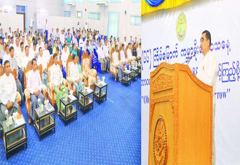 (၆၆) ကြိမ်မြောက် ကမ္ဘာ့မိုးလေဝသနေ့ အထိမ်းအမှတ်အခမ်းအနားကို ယနေ့နံနက်ပိုင်းတွင် နေပြည်တော် ပို့ဆောင်ရေးနှင့်ဆက်သွယ်ရေးဝန်ကြီးဌာန ရုံးအမှတ် (၅)၌ ကျင်းပရာ ပို့ဆောင်ရေးနှင့်ဆက်သွယ်ရေးဝန်ကြီးဌာန၊ စိုက်ပျိုးရေး၊ မွေးမြူရေးနှင့်ဆည်မြောင်းဝန်ကြီးဌာန၊ သယံဇာတနှင့်သဘာဝပတ်ဝန်းကျင်ထိန်းသိမ်းရေးဝန်ကြီးဌာနနှင့် ပညာရေးဝန်ကြီးဌာနတို့မှ ဒုတိယဝန်ကြီးများ၊ လုပ်ငန်းနယ်ပယ်နှင့် သက်ဆိုင်သောဌာနများမှ တာဝန်ရှိသူများနှင့် ဖိတ်ကြားထားသော ဧည့်သည်တော်များ တက်ရောက်ကြသည်။