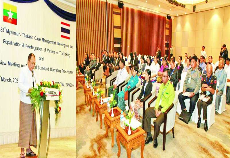 လူမှုဝန်ထမ်း၊ ကယ်ဆယ်ရေးနှင့် ပြန်လည်နေရာချထားရေးဝန်ကြီးဌာန ဒုတိယဝန်ကြီး ဒေါက်တာသန်းစိုးသည် ယနေ့နံနက်ပိုင်းတွင် ရန်ကုန်မြို့ Parkroyal Hotel ၌ ကျင်းပသည့် လူမှုဝန်ထမ်း၊ ကယ်ဆယ်ရေးနှင့် ပြန်လည်နေရာချထားရေးဝန်ကြီးဌာနနှင့် ထိုင်းနိုင်ငံ လူမှုဖွံ့ဖြိုးတိုးတက်ရေးနှင့်လူသားလုံခြုံရေးဝန်ကြီးဌာနတို့၏ (၃၃) ကြိမ်မြောက် မြန်မာ-ထိုင်း လူကုန်ကူးခံရသူများအား ပြန်လည်လက်ခံရေးနှင့် ပြန်လည်ဝင်ဆံ့ပေါင်းစည်းရေးဆိုင်ရာ ဖြစ်ရပ်စီမံခန့်ခွဲမှု ညှိနှိုင်းအစည်းအဝေးနှင့် မြန်မာ-ထိုင်း ဖြစ်ရပ်စီမံခန့်ခွဲခြင်းနှင့် လူကုန်ကူးခံရသူများအား ပြန်လည်ပို့ဆောင်ခြင်းနှင့် ပြန်လည်ဝင်ဆံ့ပေါင်းစည်းခြင်းဆိုင်ရာ နှစ်နိုင်ငံစံလုပ်ငန်းအစီအစဉ် ပြန်လည်သုံးသပ်သည့် အစည်းအဝေးသို့ တက်ရောက် အမှာစကားပြောကြားသည်။