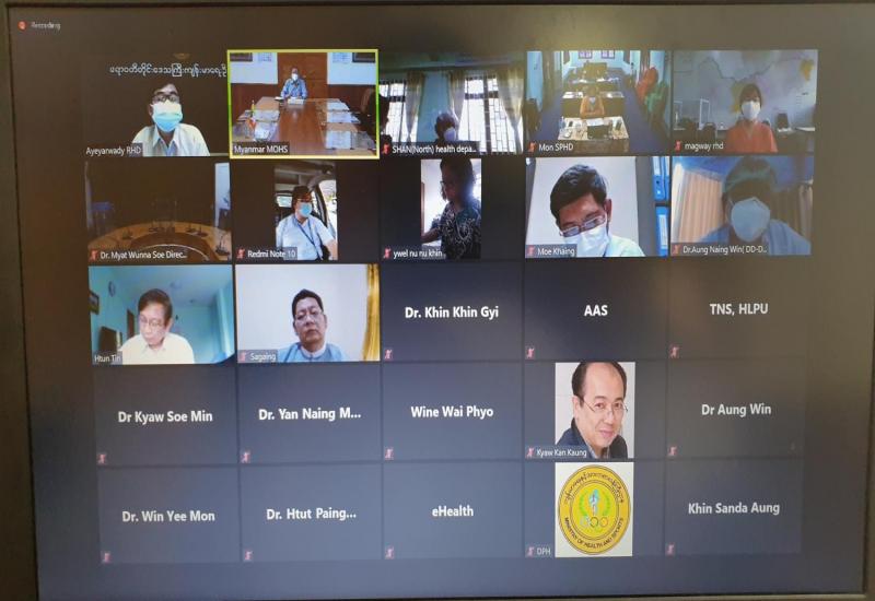 ကျန်းမာရေးနှင့်အားကစားဝန်ကြီးဌာန ကိုဗစ်-၁၉ ရောဂါကာကွယ်၊ ထိန်းချုပ်၊ ကုသရေး လုပ်ငန်း အရှိန်အဟုန်မြှင့်တင်ရေး ညှိနှိုင်းအစည်းအဝေးကို ယနေ့မွန်းလွဲပိုင်းတွင် ရုံးအမှတ် (၄)၊ ကျန်းမာရေးနှင့် အားကစားဝန်ကြီးဌာန နေပြည်တော်၌ Video Conference ကျင်းပရာ ပြည်ထောင်စုဝန်ကြီး ဒေါက်တာသက်ခိုင်ဝင်း တက်ရောက်သည်။