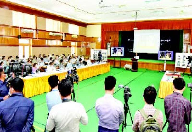 ၄၁။ Myanmar Public Press News Agency တာဝန်ခံအယ်ဒီတာ ဒေါက်တာစိုးမြင့်ဦးက ပထမဦး ဆုံး မေးလိုသည့်မေးခွန်းမှာ မိမိတို့နိုင်ငံမှာ ဒီမိုကရေစီ စနစ်ကို ငါးနှစ်၊ နှစ်ကြိမ်ဖြတ်သန်းပြီးသည့်နောက် မျိုးချစ်စိတ် တော်တော်လေးအားနည်းလာသည်ကို တွေ့ရကြောင်း၊ နောက်ပိုင်းဒုတိယအကြိမ် လွှတ်တော် သက်တမ်းတွင် မိမိတို့နိုင်ငံက ယဉ်ကျေးမှုသည်တော်တော်လေး ယိုင်နဲ့လာကြောင်း၊ အမျိုးသားရေး စရိုက်လက္ခဏာများလည်း တော်တော်အားနည်းလာကြောင်း၊ ထို့ကြောင့် နိုင်ငံတော်စီမံအုပ်ချုပ်ရေး ကောင်စီလက်ထက်တွင် မျိုးချစ် စိတ်ရှင်သန် ထက်မြက်ရေး၊ အမျိုးသားယဉ်ကျေးမှုနှင့် အမျိုး သားရေးစရိုက်လက္ခဏာများ ကာကွယ်မြှင့်တင်နိုင် ရန် တပ်မတော်ဘက်က မည်သို့စီစဉ်ထားပါသလဲ။ နောက်တစ်ချက်က ဆို၊ က၊ ရေး၊ တီး ပြိုင်ပွဲများ ကိုလည်း ပြန်ပြီးပြုလုပ်ရန် အစီအစဉ်ရှိပါသလား ဆိုသည်ကို သိလိုကြောင်း မေးမြန်းသည်။