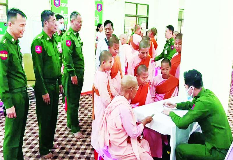 တပ်မတော်အနေဖြင့် ပြည်သူလူထု၏ ကျန်းမာရေးကဏ္ဍတိုးတက်မြင့်မားစေရန်အတွက် ကျန်းမာရေးစောင့်ရှောက်မှုလုပ်ငန်းများတွင် တစ်ဖက်တစ်လမ်းမှ ကူညီစောင့်ရှောက်မှုများ ဆောင်ရွက်ပေးလျက်ရှိရာ ယနေ့နံနက်ပိုင်းတွင် အရှေ့ပိုင်းတိုင်းစစ်ဌာနချုပ် နယ်လှည့်ဆေးကုသရေးအဖွဲ့က ရှမ်းပြည်နယ် (တောင်ပိုင်း) ရပ်စောက်မြို့နယ် ထီးခမ်းကျေးရွာရှိ ဒေသခံတိုင်းရင်းသားပြည်သူများအား အဆိုပါကျေးရွာရှိ ထီးတစ်ပင်ကျောင်းတိုက်၌ အခြေပြု၍ ကျန်းမာရေးစောင့်ရှောက်မှုလုပ်ငန်းများ ဆောင်ရွက်ပေးသည်။