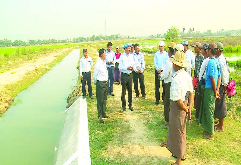 စိုက်ပျိုးရေး၊ မွေးမြူရေးနှင့်ဆည်မြောင်းဝန်ကြီးဌာန ဒုတိယဝန်ကြီး ဦးဗိုလ်ဗိုလ်ကျော်သည် တာဝန်ရှိသူများနှင့်အတူ ယမန်နေ့ မွန်းလွဲပိုင်းက ပြည်ထောင်စုနယ်မြေ နေပြည်တော်လယ်ဝေးမြို့နယ်ရှိ သီးနှံစိုက်ဧကများ ပိုမိုတိုးတက်စေရေးနှင့် ပန်းတိုင်အထွက်နှုန်း ပြည့်မီကျော်လွန်စေရေးအတွက် ချောင်းမငယ်နှင့် မဒန်းဆည်ရေသောက်စနစ်အတွင်း မြောင်းအဖျားပိုင်းဧရိယာများအထိ နွေစပါးနှင့် နွေအခြားသီးနှံစိုက်ပျိုးရေလုံလောက်စွာ ပေးဝေနေမှုအခြေအနေများကို ကြည့်ရှုစစ်ဆေးသည်။