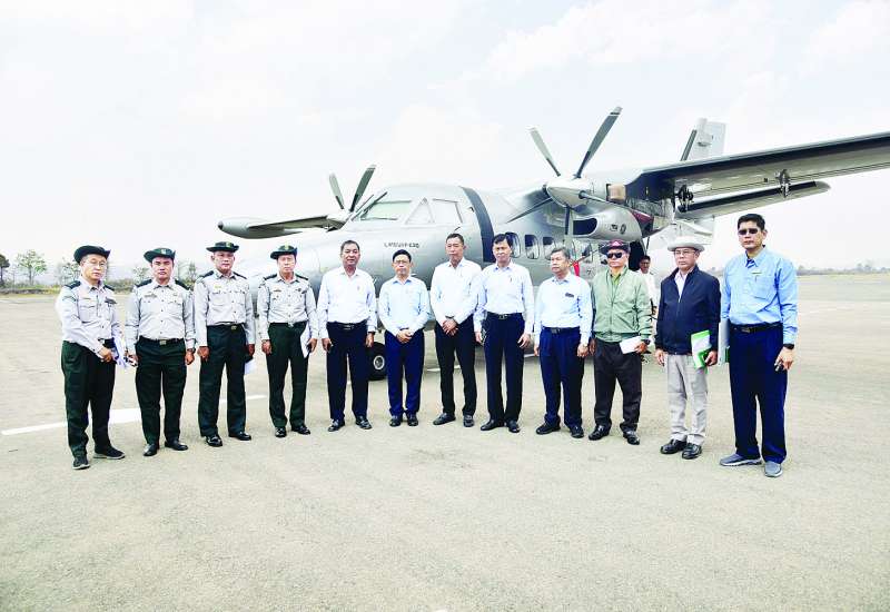 သယံဇာတနှင့် သဘာဝပတ်ဝန်းကျင်ထိန်းသိမ်းရေးဝန်ကြီးဌာန ဒုတိယဝန်ကြီး ဦးမင်းသူ၊ သစ်တောဦးစီးဌာန၊ ကြေးတိုင်နှင့် မြေစာရင်းဦးစီးဌာနနှင့် မြေတိုင်းဦးစီးဌာနတို့မှ ညွှန်ကြားရေးမှူးချုပ်များနှင့် တာဝန်ရှိသူများသည် ညောင်ရွှေမြို့နယ် အင်းလေးကန်ပတ်လည်တွင် မြေအသုံးချမှုပြောင်းလဲမှုများအား ဝေဟင်မှ ကြည့်ရှုစစ်ဆေးရန် ယနေ့နံနက်ပိုင်းတွင် နေပြည်တော်လေဆိပ်မှ ချက်နိုင်ငံထုတ် Let L 410 အမျိုးအစားသယ်ယူပို့ဆောင်ရေးလေယာဉ်ဖြင့် ထွက်ခွာလာကြရာ ဟဲဟိုးလေဆိပ်သို့ ရောက်ရှိကြသည်။
