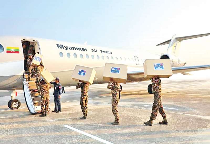 တရုတ်နိုင်ငံ ဝူဟန်မြို့တွင် ၂၀၁၉ ခုနှစ် ဒီဇင်ဘာလမှစတင် ဖြစ်ပွားခဲ့သည့် ကိုရိုနာဗိုင်းရပ်စ် Coronavirus Disease 2019 (COVID-19)ရောဂါအား တရုတ်ပြည်သူ့သမ္မတနိုင်ငံ အနေဖြင့် တိုက်ဖျက်ရေးလုပ်ငန်းများအား ဆောင်ရွက်လျက်ရှိရာ ရောဂါတိုက်ဖျက်ရေးလုပ်ငန်းစဉ် အောင်မြင်စေရန်နှင့် တရုတ်ပြည်သူများအတွက် မြန်မာ့တပ်မတော်က ဆေးဘက် ဆိုင်ရာ ပစ္စည်းများအား ကာကွယ်ရေးဦးစီးချုပ်ရုံး (ကြည်း) မှ စစ်ရေးချုပ် ဒုတိယဗိုလ်ချုပ်ကြီး မျိုးဇော်သိန်း ဦးဆောင်၍ တပ်မတော်လေယာဉ်ဖြင့် ယနေ့တွင် သွားရောက်ပေးပို့ လှူဒါန်း သည်။