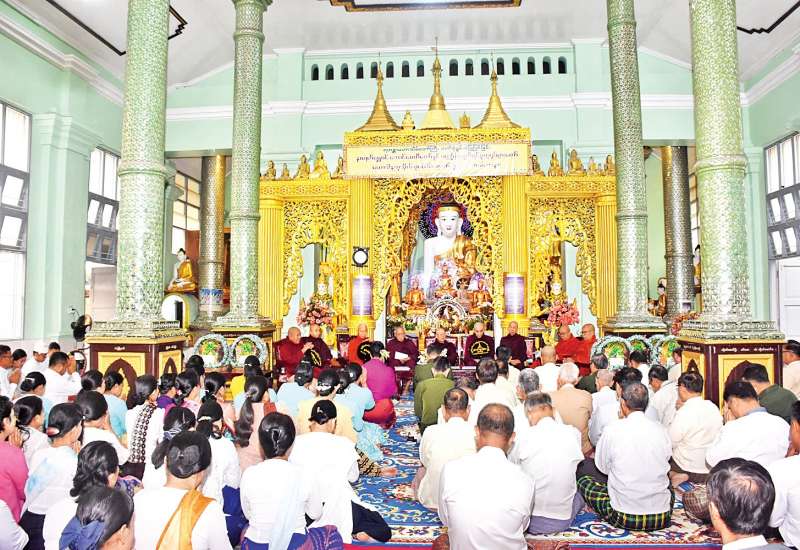 ရဟန္တာမဟာသိမ်တော်ကြီး ဘက်စုံ မွမ်းမံပြုပြင်ခြင်းနှင့် နဝရတ်ရွှေစင်အောင် စေတီတော်နှင့် ပတ္တမြား မျက်ရှင်ပုံတူရုပ်ပွားတော် မဟာဒါနကုသိုလ် စုပေါင်းရေစက်ချမင်္ဂလာ အခမ်းအနားကို ယနေ့နံနက်ပိုင်းတွင် ရွှေတိဂုံစေတီတော် တောင်ဘက်မုခ် အနီးရှိ အဆိုပါ မဟာသိမ်တော်ကြီး၌ ကျင်းပသည်။