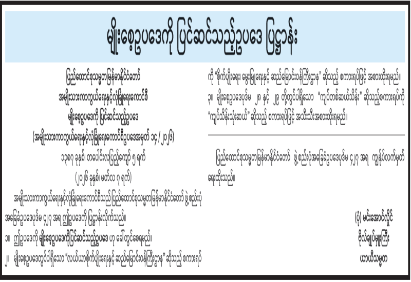 ရှေ့နေများအက်ဥပဒေကို ပြင်ဆင်သည့်ဥပဒေ ပြဋ္ဌာန်း
