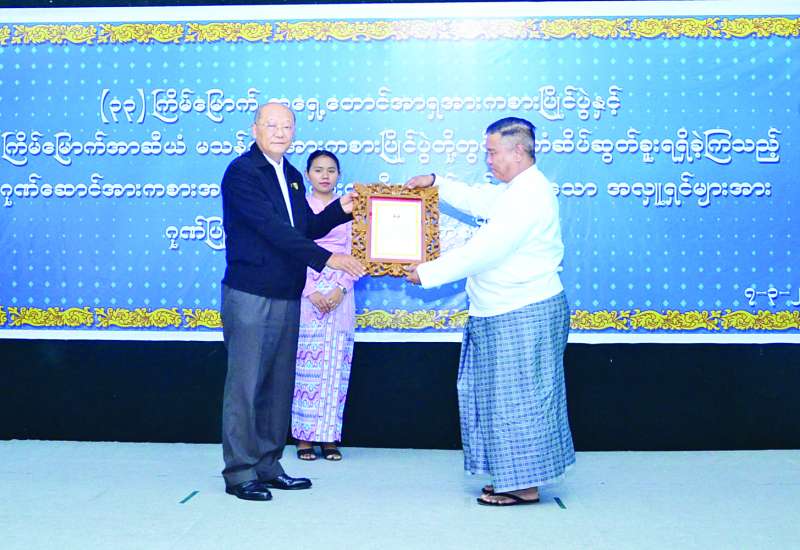 (၃၃)ကြိမ်မြောက် အရှေ့တောင်အာရှအားကစားပြိုင်ပွဲနှင့် (၁၃)ကြိမ်မြောက် အာဆီယံမသန်စွမ်း အားကစားပြိုင်ပွဲတို့တွင် ဆုတံဆိပ်များဆွတ်ခူးရရှိခဲ့ကြသည့် နိုင်ငံ့ဂုဏ်ဆောင်အားကစားအဖွဲ့များအား ပံ့ပိုးကူညီဆောင်ရွက်ပေးခဲ့သည့် စေတနာရှင်အလှူရှင်များအား ဂုဏ်ပြုမှတ်တမ်းလွှာပေးအပ်ပွဲကို ယနေ့နံနက်ပိုင်းတွင် နေပြည်တော်အားကစားလေ့ကျင့်ရေးစခန်းရှိ ဘက်စုံသုံးခန်းမ၌ ကျင်းပသည်။