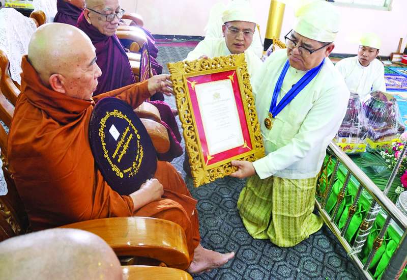 ရန်ကုန်တိုင်းဒေသကြီးအစိုးရအဖွဲ့က ကြီးမှူး ကျင်းပသည့် ၂၀၂၆ ခုနှစ် သာသနာတော်ဆိုင်ရာ ဘွဲ့တံဆိပ်တော်ရ ဆရာတော်ကြီးများ၊ သီလရှင်ဆရာကြီးများနှင့် လူပုဂ္ဂိုလ်များအား သာသနာတော်ဆိုင်ရာဘွဲ့တံဆိပ်တော်များ ဆက်ကပ်ချီးမြှင့်အပ်နှင်းပွဲကို ယနေ့မွန်းလွဲ ၁ နာရီတွင် ရန်ကုန်မြို့ သီရိမင်္ဂလာ ကမ္ဘာအေးကုန်းမြေရှိ ဆဋ္ဌသင်္ဂါယနာတင် မဟာပါသာဏလိုဏ်ဂူသိမ်တော်ကြီး၌ ကျင်းပသည်။